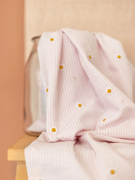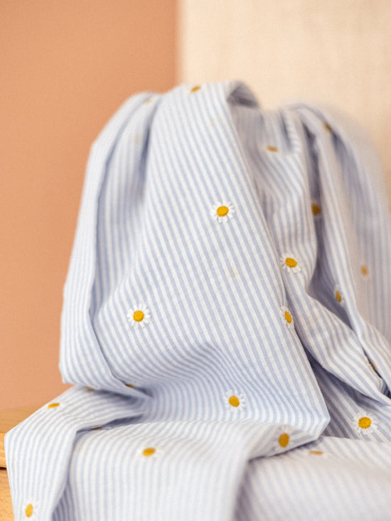 La double gaze est un tissu 100% coton, doux, léger et souple, à effet froissé. Confortable et aérien, grâce ses deux couches de gaze piquées à endroits réguliers, ce tissu fera le bonheur de vos bébés.